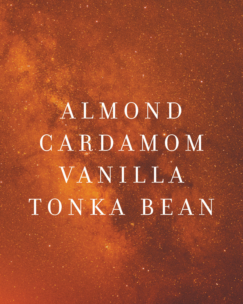 This has been a favorite in testing—it's incredibly easy to love! It's YUMMY without being fake-sweet. The top notes of almond/marzipan are swoon-worthy and the cardamom spice brings balance and depth. This is a must-have gourmand scent for you vanilla/tonka bean lovers <3
